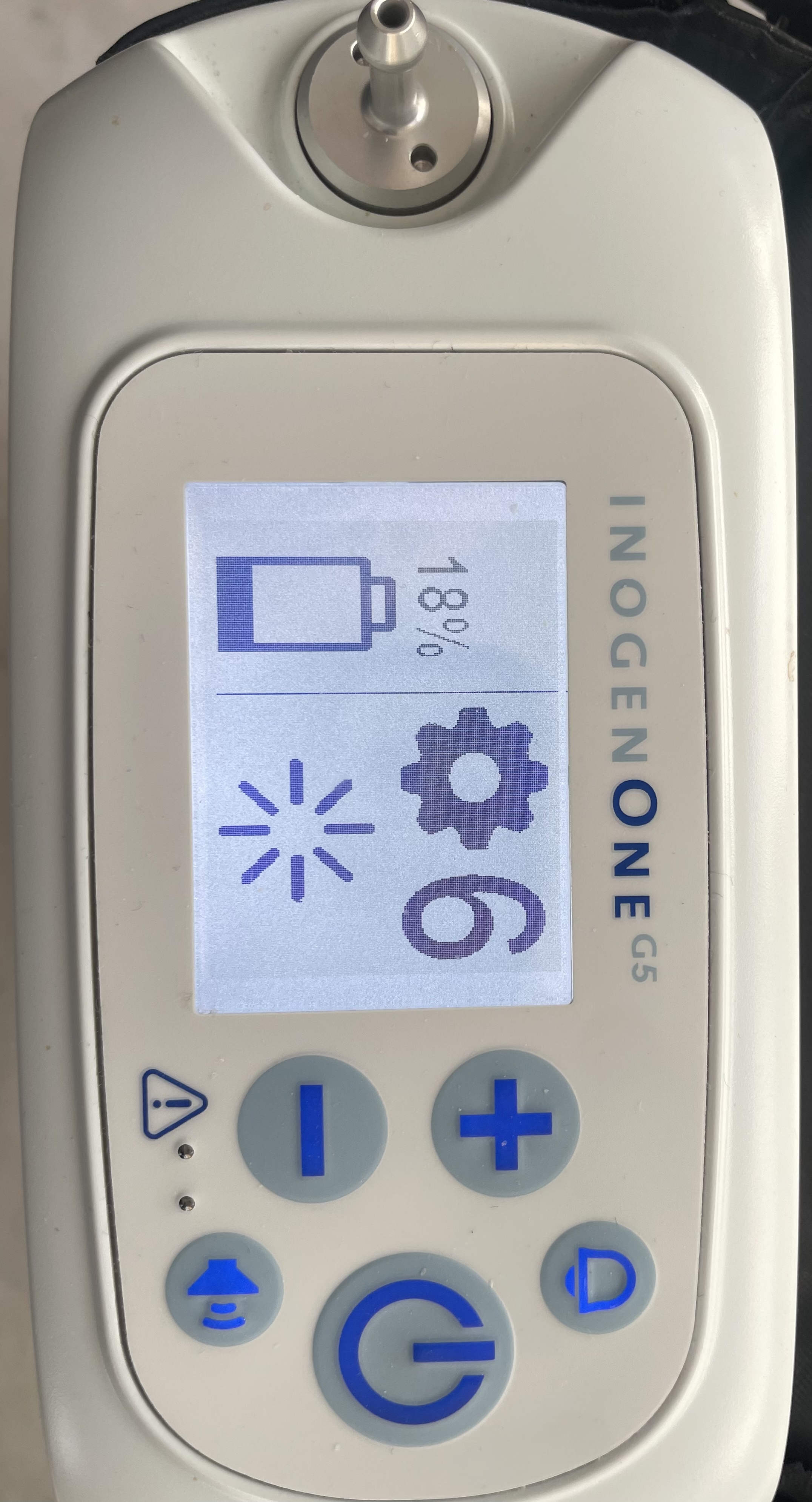 Ik zou hem best graag willen overnemen, maar helaas kan ik niet zomaar zelf een apparaat kopen, want dan loop ik de stroomkosten die vergoed worden door de zorgverzekeraar mis. Het lijkt me wel een verademing een mooi nieuw up to date apparaat, ipv mijn piepende en krakende Inogen 3 ik denk dat jij de 5 hebt op de foto.