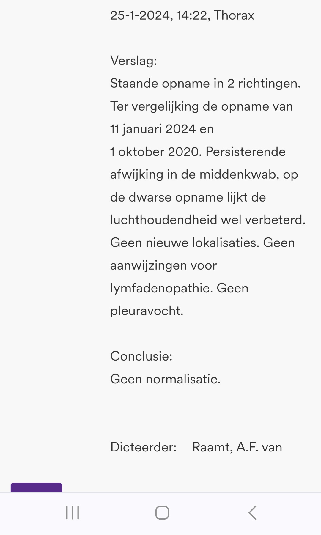 Was ik weer, ik heb na de antibiotica verhoging gehouden, (in totaal 2 soorten antibiotica voor 3 weken) dus de thoraxfoto is vervroegd. De uitslag staat in de bijlage.