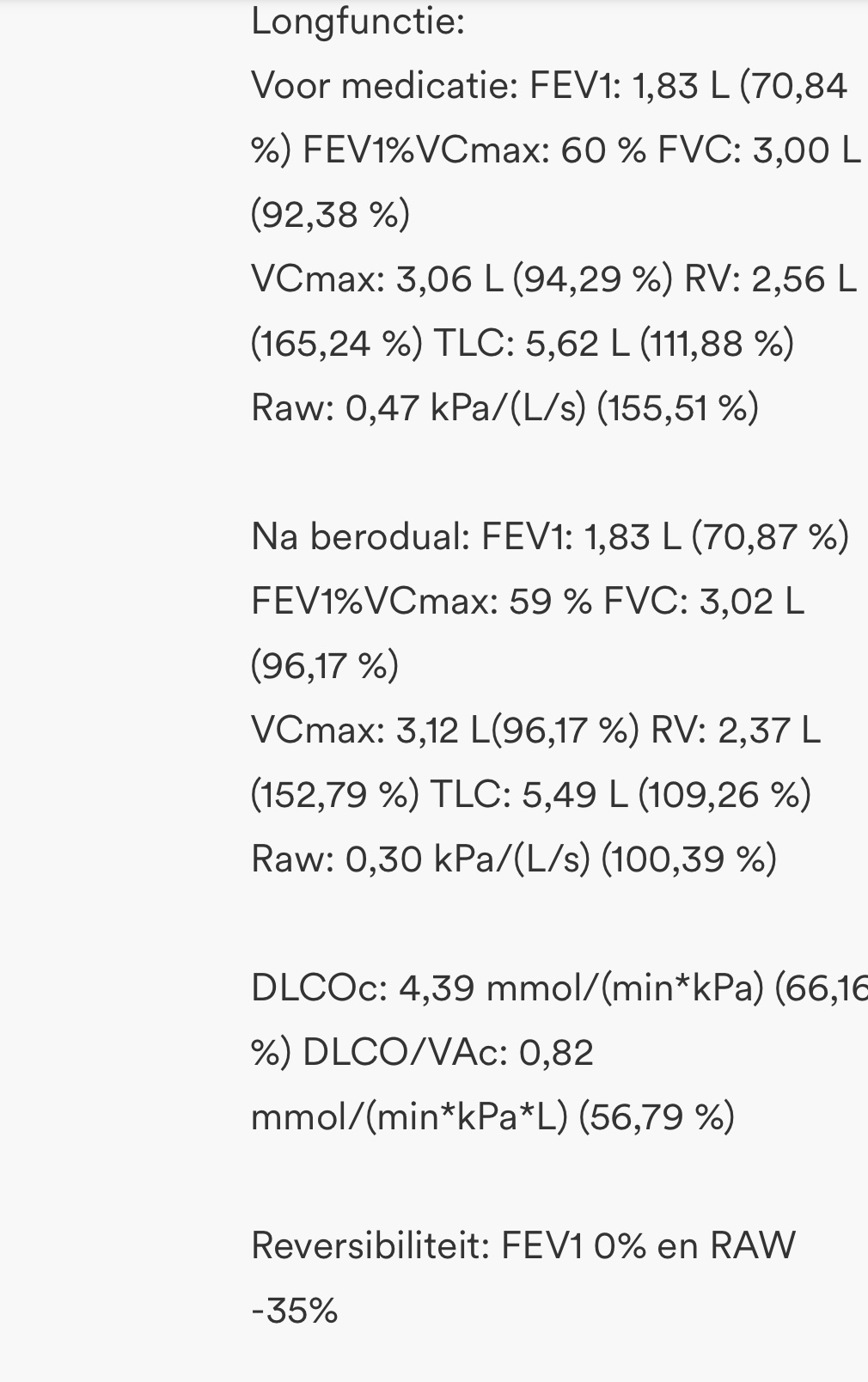 Beide longfuncties zijn nagenoeg hetzelfde. Kleine variaties van enkele ml en enkele % is normaal. Dat is de normale variatie in de longfunctie meting.