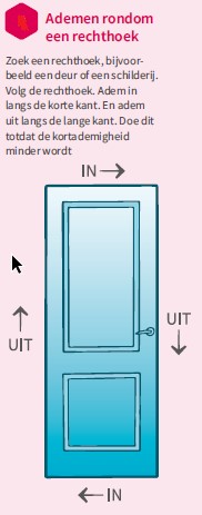 een ademhalingstechniek waarbij je je ademhaling koppelt aan de beweging van je ogen over de zijden van een rechthoek. Je ademt in bij de korte kanten van de rechthoek en ademt uit bij de lange kanten, waardoor je ademhaling langzamer en dieper wordt. De uitademing doe je dan inderdaad met getuite lippen. Zie ook de bijgevoegde afbeelding.
