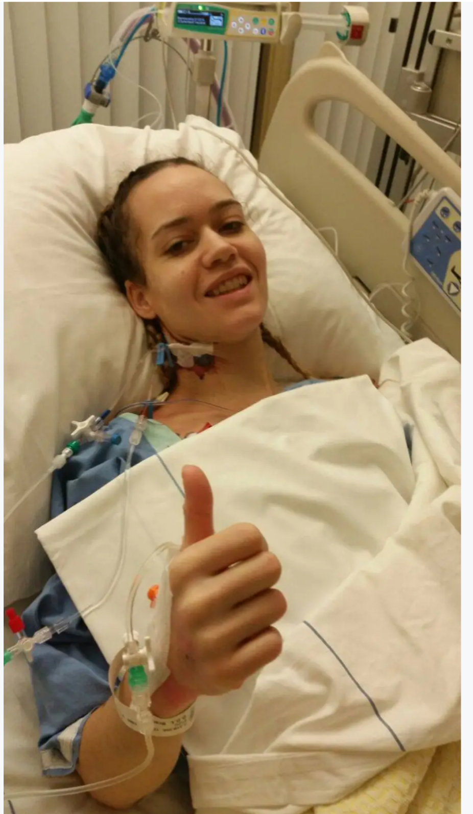 Binnen 6 weken lag ik op de OK de operatie ging in eerste instanties volgend het boekje. Maar helaas een paar uur later, toen ik voor het eerst even recht op zat. En een festini peren ijsje lag te eten ( eet ik overigens nooit meer) want door de zuurstof en de tube die eruit mocht toen ik bij kwam, was mijn keel erg droog en dan is dus iets kouds wel heel lekker. Helaas voor mij voelde ik mij in eens niet goed worden, maar omdat ik niet op de IC lag maar op de HIGH care had ik geen 1:1 maar iemand die meerdere patienten op mijn kamer deed uit mijn hoofd, had elke verpleegkundige 2-3 patienten, nog niet veel. Wat ik mij dus nog kan herinneren was dat ze op moment dat ik weg zakte net even weg gelopen. En gelukkig was ik helder genoeg om te bedenken dat ik mijn meters van mijn vingers moest halen waardoor de monitoren begonnen te piepen en ze direct kwam kijken.. de verpleegkundige zag mij blauw en grouw worden, en heeft mij direct in een stabielie ligging gelekt, een ander verpleger haalde de knijper van mijn drain af want bij de operatie word de drain namelijk dicht gehouden omdat het plura vocht de ruimte moet vullen die je overhoud van het verwijderen van je long, binnen 30 sec stroomde mijn buis vol en zat er meer dan 500 ml donkerrood bloed in dit was dus geen wondvocht maar echt bloed,