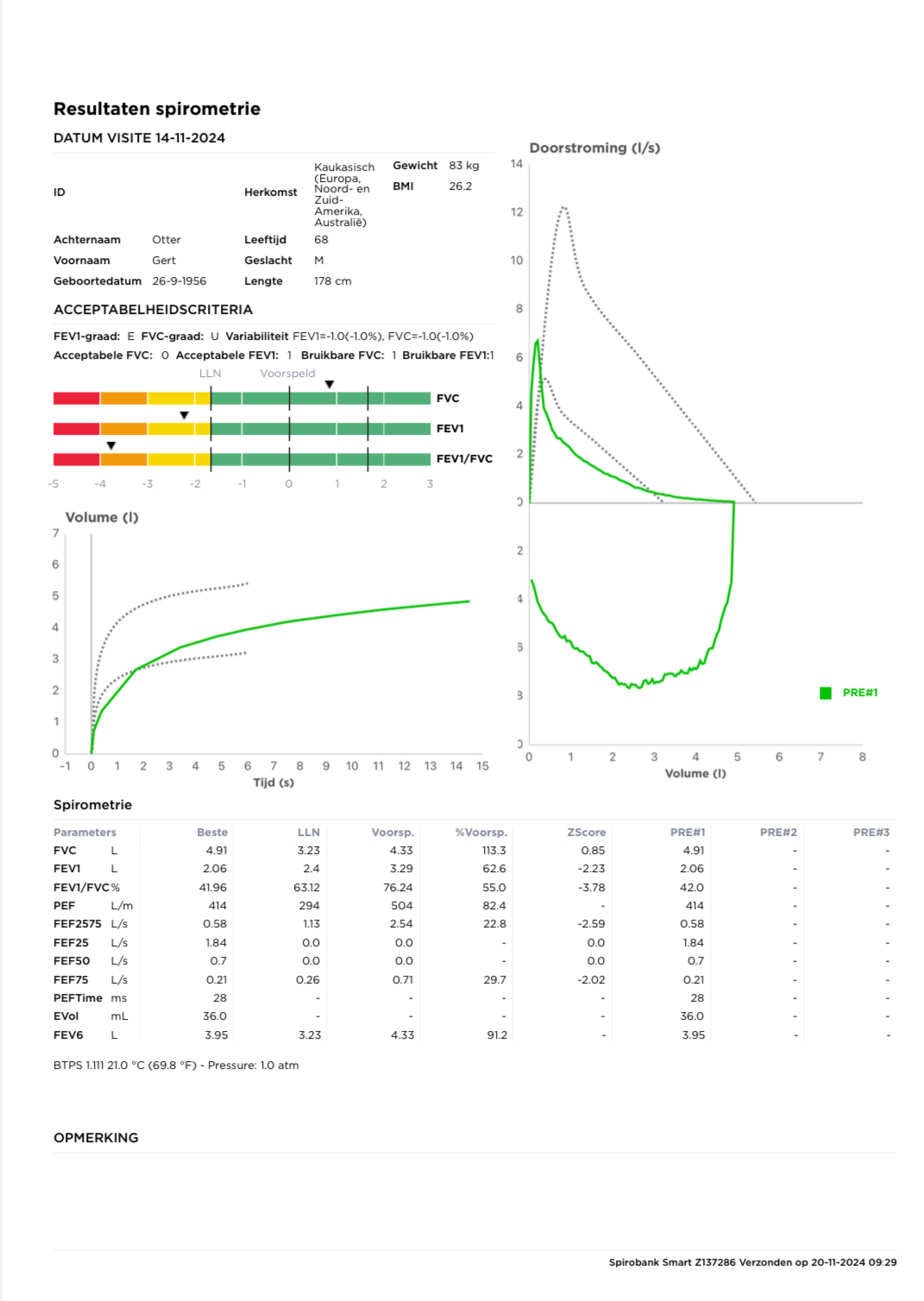 De techniek is inmiddels klaar om dergelijke data ‘automatisch’ door te geven en te signaleren bijvoorbeeld MIR gekoppeld aan de PGO de Gezondheidsmeter. De behandelend longverpleegkundige of longarts kunnen deze gegevens in het ziekenhuis uitlezen zoals bijvoorbeeld in het st Franciscus Gasthuis & Vlietland. Scheelt veel tijd voor de arts en energie voor de patiënt en voelt veiliger.