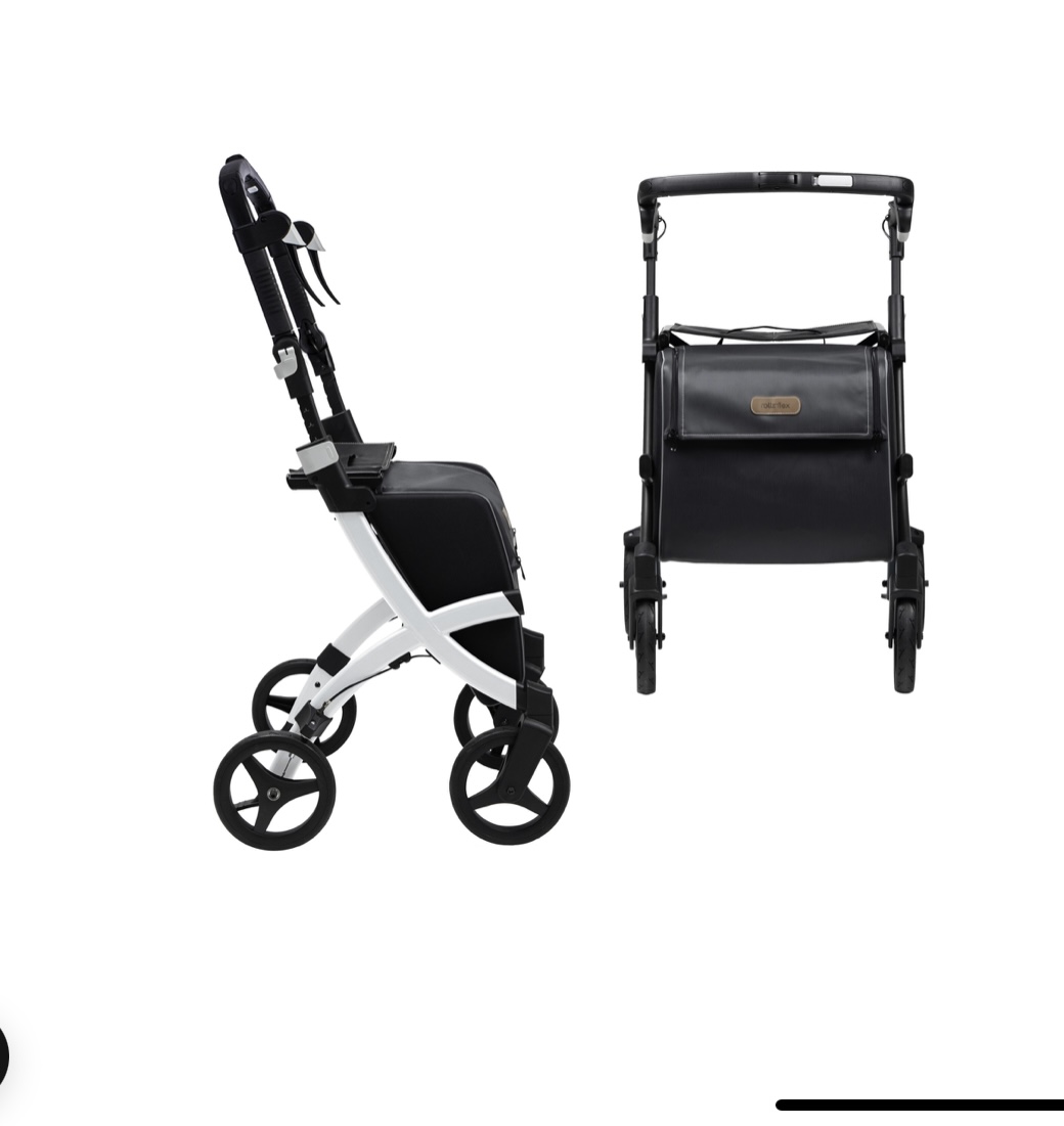 Ik loop al sinds 2015 met een rollz flex rollator, die ook met een soort kinderwagen beugel gebruikt kan worden. Daar zit een mooie grote tas aan, waar mijn inbogen 5 in past. Of ik doe mijn hondje erin en hang mijn inbogen aan het handvat😀