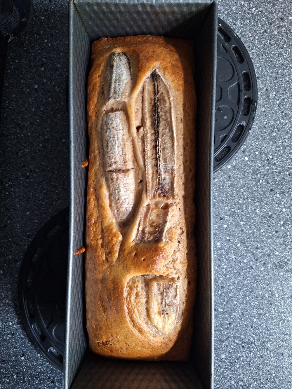 Vond net nog een paar bananen op de fruitschaal. Heb (ook voor het eerst een bananenbrood gebakken). Net uit de oven, dus weet nog niet hoe het smaakt.
